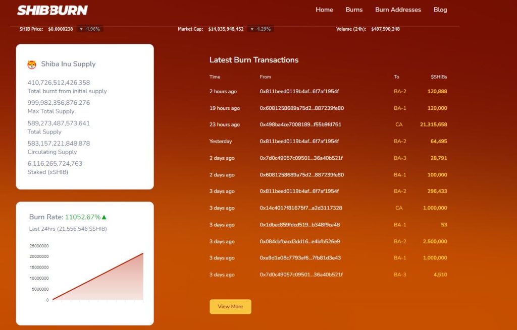 According to fresh data from Shibburn, a dedicated Shiba Inu burn tracker, the Shiba Inu community has succeeded in destroying exactly 21,556,546 SHIB in the last 24 hours. As a result, the burn rate has surged exponentially by 11,052%. The rise in the burn rate was triggered by a significant transfer from a wallet labeled ‘0x498…d761’ carrying 21.3 million SHIB to a burn address. Overall, there have been three burn transfers recorded today, with the other two destroying 120,888 (120.8 thousand), and 12,000 respectively.