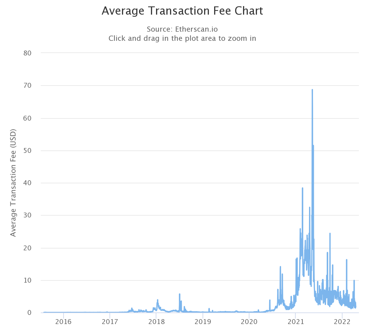 Due to scalability issues, an overload of transactions can lead to ridiculously high gas fees that makes the network inaccessible to the average user.