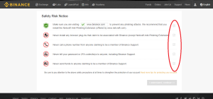 Once you log in, a risk notice containing some security tips will pop up on your screen. Tick them and continue to the next step.