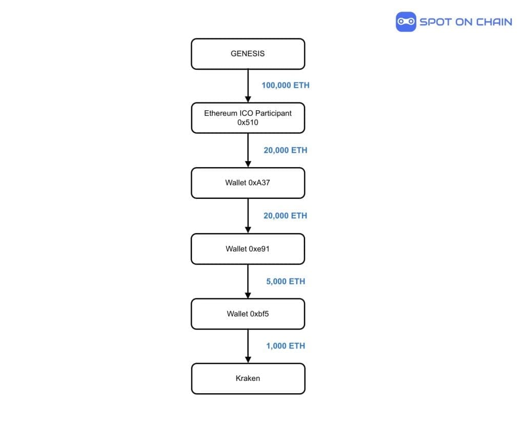 While the news of the Ethereum ETF launch circulates, large investors, commonly known as whales, are making major moves ahead of the scheduled time. Recently, two Genesis wallets from the time of the Ethereum ICO have shifted more than 3,600 ETH coins to the Kraken exchange.